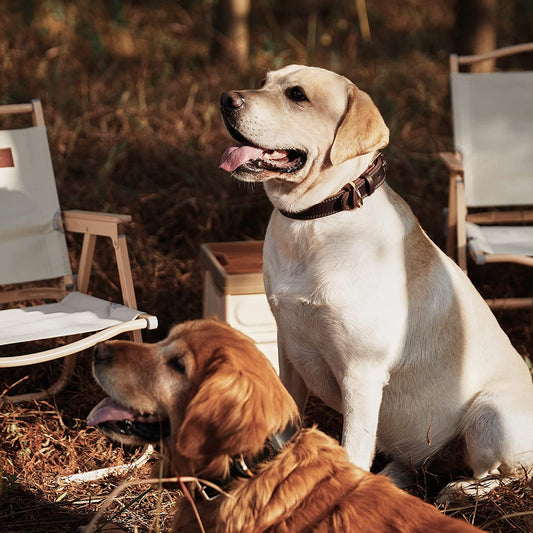 Leather Dog Collar, Heavy Duty Wide Dog Collar for Small,Medium,Large and Extra Large Dogs (M: 1" Wide for 15.2"-19.2" Neck, Dual Stitch - Brown)