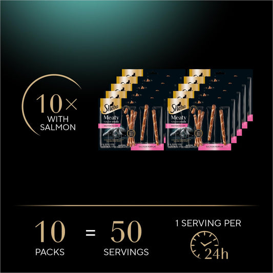 Meaty Tender Sticks Soft Cat Treats Salmon Flavor, 0.14 Oz., 5 Sticks, Pack of 10 (50 Sticks Total)